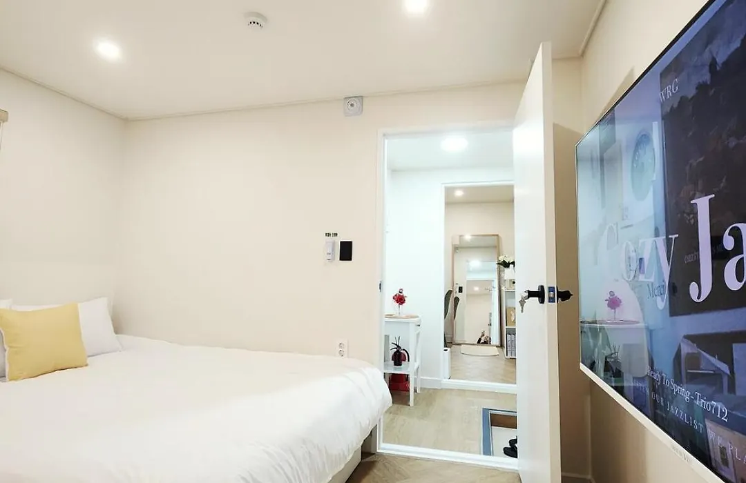 このアパートには台所も備わっています。 この宿泊は南浦地下鉄駅から歩いて10分くらいの所にあります。